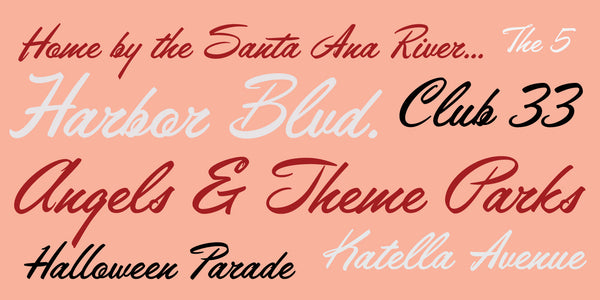 Anaheim Script is another fun retro 1950s script font from Jukebox. Inspired by a sample in an old "how-to" book on hand lettering, this font grabs attention with its fun mid-century feel. Reminiscent of the hand painted signs of the 1950s and 1960s, Anaheim Script captures the fun and optimistic view of southern California.