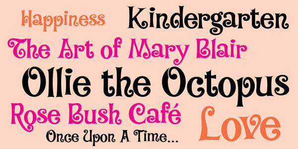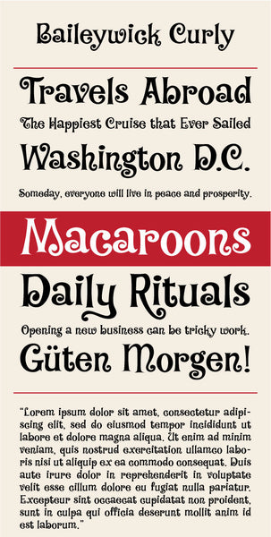 Baileywick Curly is one of three fonts that comprise the Baileywick Complete set, which was loosely based on the art and lettering style of Mary Blair and is a tribute to her.