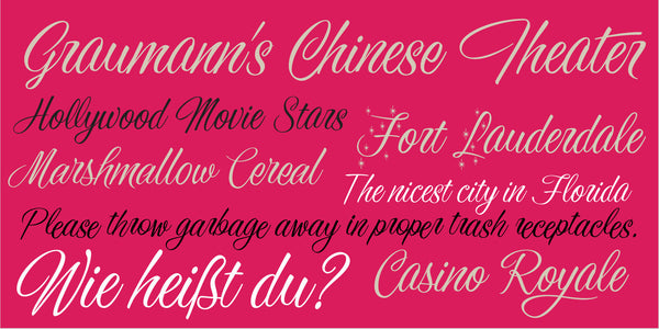 Sunset Strip is a beautiful casual script font with a wide range of applications. This original Jukebox font is another in the series of typefaces I created based on the work of the venerable late sign painter Mike Stevens. The flowing ease of this font with its mid-century modern style makes it a great choice for a design that needs class and approachability. There are at least three versions of each letter and in some cases a few more, giving the font the ability to mimic handlettering more closely. There are also two full sets of alternate "Star Caps" added for extra fun!