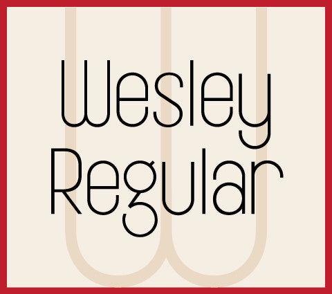 Wesley Regular is a geometric style sans-serif font that is named after the designer's paternal grandfather. The design invokes a streamlined, somewhat art deco feeling that is perfect for a variety of typographic uses, but also perfectly suits futuristic and techno designs as well. The lowercase "g" has a unique design with an open bowl.